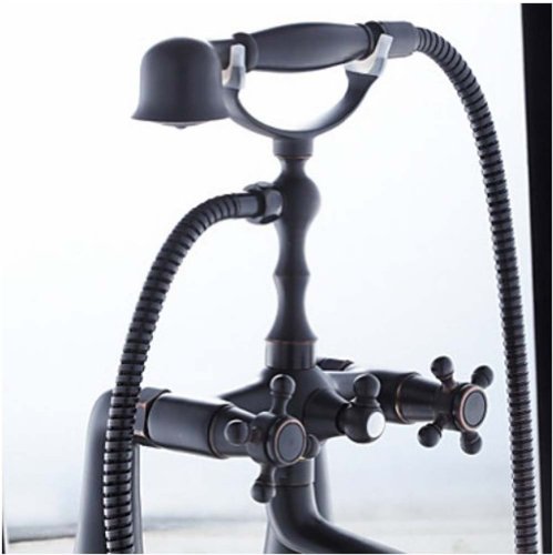 -. Title : Rozinsanitary Deck Mount Bathtub Faucet Oil Rubbed Bronze Dual Handle Mixer Tap with Hand Shower