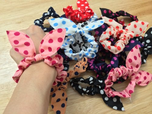 - Title : 10pc Polka Dot Bunny Ear Ponytail Holder Hair Ties [Misc.]