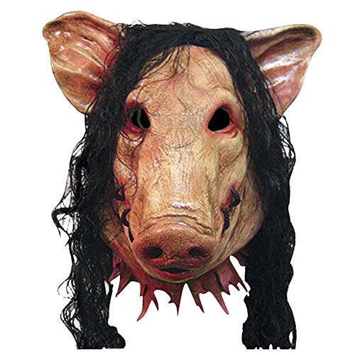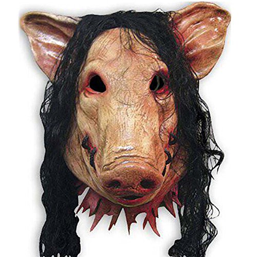 -. Binding : Apparel -. Brand : MissFox -. Department : mens -. Feature : Perfect for Masquerade Parties,Gifts,Costume Parties,Halloween / Fits most adult heads / Package weight:0.3KG / If you are allergic to latex, don't wear this / This product normally has a smelling of latex,you can put it on the Ventilation place for one day -. ProductGroup : Apparel -. ProductTypeName : ACCESSORY -. Title : MissFox Halloween Party Cosplay Pig Head With Hair Animal Saw Mask Masquerade