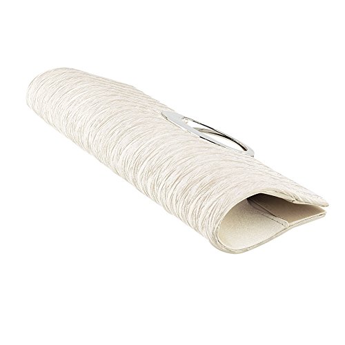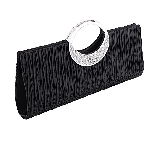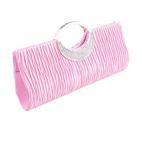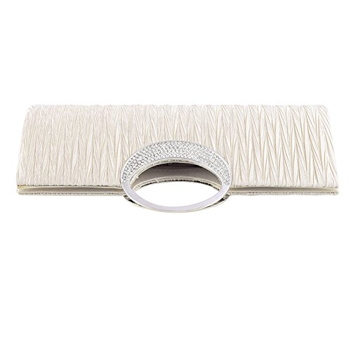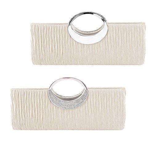 Jubileens Luxury Rhinestone Satin Pleated Evening Wedding Party Clutch Purse Wallet Handbag (Champagne)