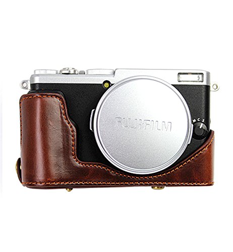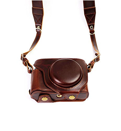 CEARI Detachable PU Leather DSLR Camera Case Bag with Shoulder Strap for Fujifilm X70 - Coffee