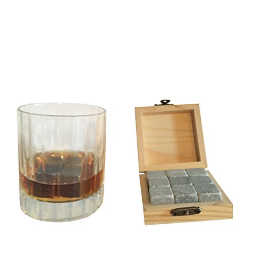 -. Title : Whiskey Stones Set of 9 Wooden Gift Box 100% Soap Stone