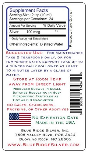 -. Binding : Health and Beauty -. Brand : Blue Ridge Silver -. Color : Blue -. EAN : 0019962040139 -. Feature : Blue Ridge Silver is a Clear Liquid Made up of the Tiniest Possible Silver Particles in Distilled Water Visible Only with a Laser Beam (See Photo to the left) / Made up of Only 99.99% Pure Silver and Purified, Deionized, Distilled Water - NO Additives or Preservatives. / Unsurpassed Quality and Purity and AMAZINGLY Effective! Produced in Small Batches Enhancing its Effectiveness and Bioavailability / Packaged in Blue PETE (BPA-Free) Plastic Bottles to Retain Purity and Effectiveness / NO RISK!! Guaranteed Safe and Effective or Your Money Back! -. Label : Blue Ridge Silver Inc. -. LegalDisclaimer : As a manufacturer and distributor of Colloidal Silver products, strict U.S. Federal Government regulations prohibit us from making any claims that BLUE RIDGE SILVER products can be used to safely and effectively treat, cure, or prevent any sickness or disease. Please refer to our AMAZON CUSTOMER PRODUCT REVIEWS for helpful information about the many uses of Blue Ridge Silver products where the rights of our customers to speak honestly and freely are protected by the First Amendment to the U.S. Constitution. -. Manufacturer : Blue Ridge Silver Inc. -. PackageQuantity : 1 -. ProductGroup : Health and Beauty -. ProductTypeName : HEALTH_PERSONAL_CARE -. Publisher : Blue Ridge Silver Inc. -. Size : 8 oz -. Studio : Blue Ridge Silver Inc. -. Title : SALE 40% OFF!! - Blue Ridge Silver, 10 ppm 8 oz Colloidal Silver -. UPC : 019962040139