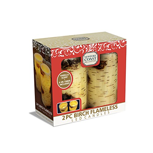 Newport Coast Collection 2 pack Birch Flame-less LED Candles Vanilla Scent 5"H with 6 Hr Timer