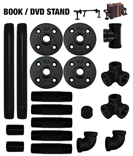 Pipe Décor 38BKCRL-BK Rustic and chic Industrial Book/DVD Stand Complete Set Electroplated Black Finish