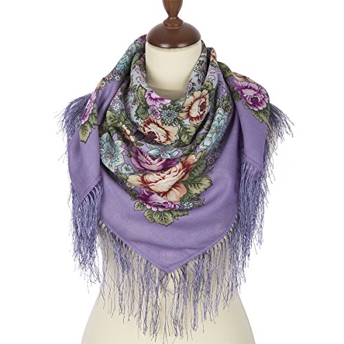 Product DescriptionPavlovo Posad Russian Shawl, Wrap, Scarf, Pashmina, Head Scarf, Neckerchief Purple Wool0