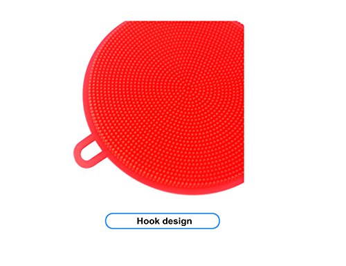 Food-grade Antibacterial Silicone Non Stick Dishwashing Brush Dish Towel Scrubber For Kitchen Wash Pot Pan Dish Bowl / Wash Fruit and Vegetable(7 color Optional) (Red)