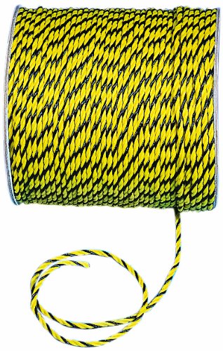 Mutual 14980 3-Strand Twisted Polypropylene Safety Rope, 1490 lbs Tensile Strength, 600' Length x 1/4" Width, Yellow/Black