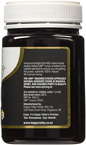 UMF 10+ (MGO 260+) manuka honey from the pristine native forests of New Zealand. This Happy Valley UMF manuka honey is lab-certified to UMF 10+ standard, equivalent to methylgloxal (MGO) 260+