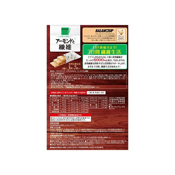 원본상품명: アサヒグルプ食品 バランスアップ ブランのちからアモンドと維 210g×4箱