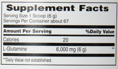 -. Feature : Fuel for your workout* / L-Glutamine supports recovery from workouts* / Glutamine is a crucial component of muscle cells* / Dietary supplement powder / *These statements have not been evaluated by the Food and Drug Administration. This product is not intended to diagnose, treat, cure or prevent any disease.