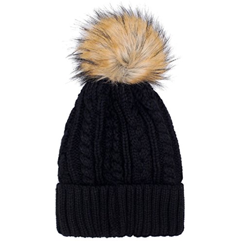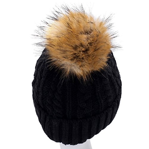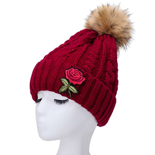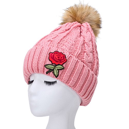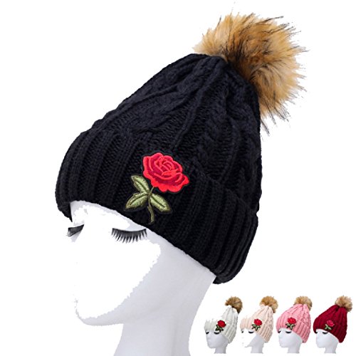 (FUNNY365)/Accessories/Hats/DIRECT FROM USA/FUNNY365 Women Pompom Knitted Hat Fleece Lined Rose Flower Warm Slouchy Beanie Cap