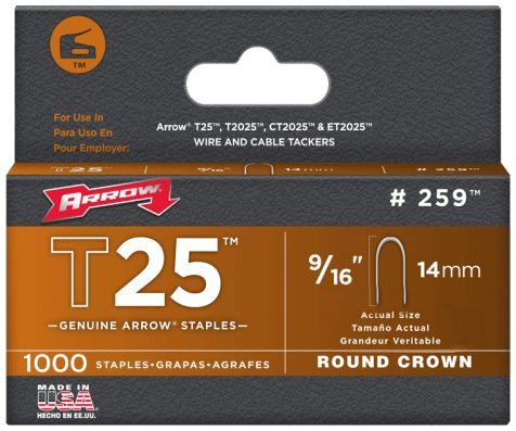 - 9/16-Inch Genuine Arrow T25 Round Crown Staple