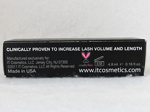 -. Binding : Misc. -. Brand : It Cosmetics -. EAN : 0893224002932 -. Feature : Developed with leading plastic surgeons, Hello Lashes 5-in-1 Treatment Mascara revolutionizes and takes the place of five products: volumizing mascara, conditioning lash primer, lash-enhancing serum, lash tint, and a lash comb/curler! / Hello Lashes offers the blackest of black color that lasts and doesn't flake or fade. / The triple-brush lengthens, curls, and separates lashes while the innovative Magic Wand lash ball detailer tip is designed to reach every last inner and outer corner lash. / Utilizes technology to infuse a blend of lash-enhancing and conditioning ingredients, including peptides, collagen, proteins, acai, jojoba, green tea, and vitamins A, C, E, and B5. / Paraben, fragrance, phthalate, and sulfate free. Made in the USA. -. Label : It Cosmetics -. Manufacturer : It Cosmetics -. MPN : 893224002932 -. PackageQuantity : 1 -. PartNumber : 893224002932 -. ProductGroup : Beauty -. ProductTypeName : BEAUTY -. Publisher : It Cosmetics -. Studio : It Cosmetics -. Title : It Cosmetics Hello Lashes 5-in-1 Volumizing Mascara 0.16 FL OZ -. UPC : 893224002932
