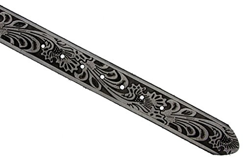 -. Feature : Solid One-Piece Leather / Western Style Leaf Pattern / 1-1/2" (38mm) Wide, 5 holes for size adjustment / Sizing: Measure around where you wear the belt, with your pants on, and order the closest size. / This belt strap is measured in inches, from the end of the strap where the buckle is attached, to the middle hole at the tip end.