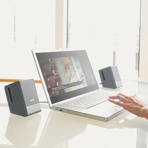 Speakers connect to your laptop, PC or a portable audio source with provided cable; A/C power pack also included