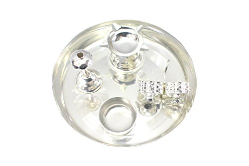 The Pooja Thali Set in German Silver consists of an intricately designed Pooja plate, as well as, an assortment of their items necessary for performing various religious rites during auspicious occasions