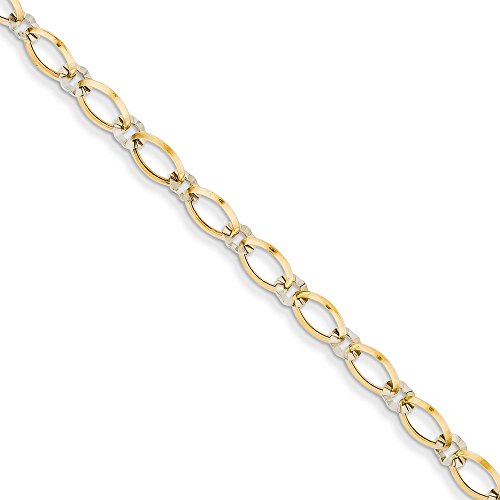 Solid 14k Gold Two-tone Oval and Diamond-Cut Circle Bracelet (5mm)