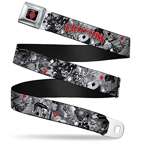 | (Buckle Down)/Accessories/Belts Buckles/DIRECT FROM USA/HARLEY QUINN Poses/Joker Love Grays/Black/White/Red Webbing - Seatbelt Belt Regular |