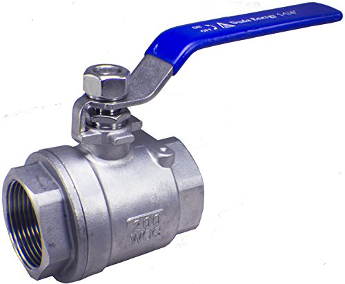 Duda Energy 2PCBV-WOG200-F125 Full Port Ball Valve, 1-1/4" NPT, 2 Piece, 304 Stainless Steel with Blue Vinyl Handle, 1.25"