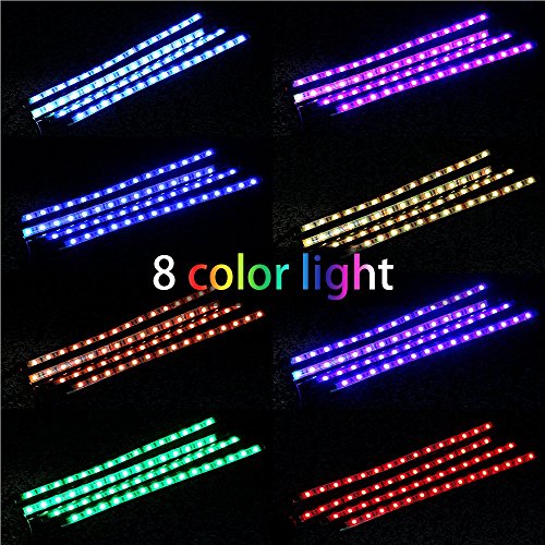 Waterproof 8 Color Car LED Strip Lights 4pcs 60 LEDs 79' Each Wire 10.6' each Light bar Sound Active Function, Wireless Remote Control with Car Charger