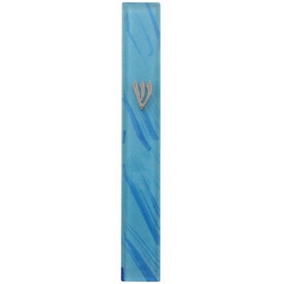 Glass Mezuzah Case Home Blessing Cover, 12 Centimeters, Blue