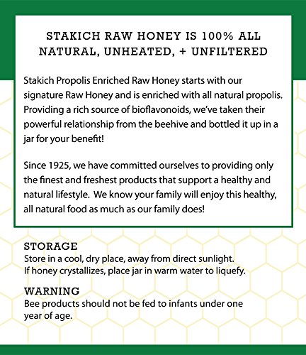 Stakich PROPOLIS Enriched RAW HONEY 40-OZ - 100% Pure, Unprocessed, Unheated -