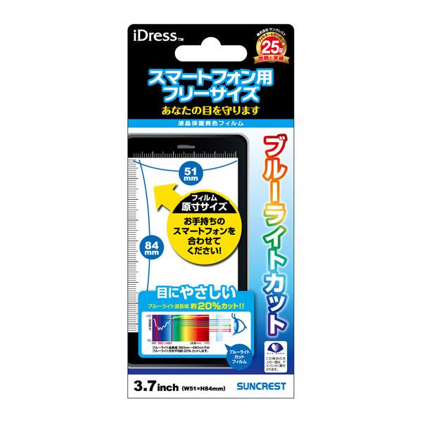 目に優しく、画面のちらつきを抑えます。 製造国:日本 素材・材質:PET、シリコン樹脂 商品サイズ:W51×H84mm 仕様:フリーサイズ(~3.7インチまで) ※サプライヤー直送品 ご注文後、当日~1営業日後の出荷となります【商品名】iDress ~3.7インチ(フリーサイズ) ブルーライトカットフィルム 37SP-BLC