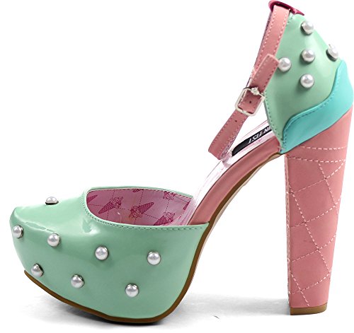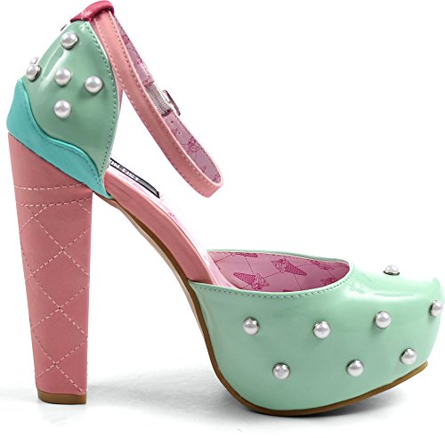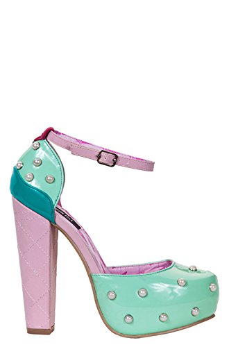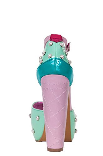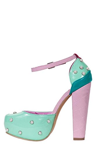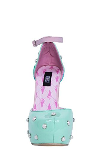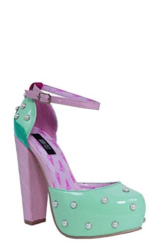 Studio : Iron Fist Publisher : Iron Fist Binding : Apparel Product Description These women's high heels by Iron Fist feature "Lick Me," a cute ice cream cone design! Dripping in pastel cuteness these platform heels are sky high with a baby pink ankle strap. Stitched detail heels, patent applique and pearl embellishment. 2.5" hidden platforms and 4" heels. All man-made materials make these shoes vegan friendly! 0