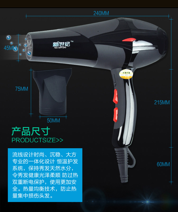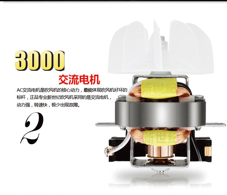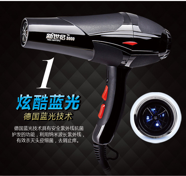 Recommended: [hair salon version of the 3000 wind], professional hair salon styling large wind, the configuration of the new century original super "pure copper AC motor": power surging, more durable, [cool / warm / heat 3 temperature + strong wind / super strong wind 2 files of wind power】 multi-file adjustment, with blue and jasmine flavor, 2 meters thick rubber line three-pin plug, authentic hair salon equipped with a real cold air technology, the summer can be refreshing cool breeze, different from the market to sell low-priced false AC motor Messy brand!