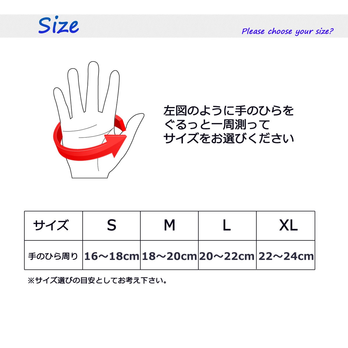 サイズ:S~XL手のひら周り(約):S(16~18cm)、M(18~20cm)、L(20~22cm)、XL(22~24cm)