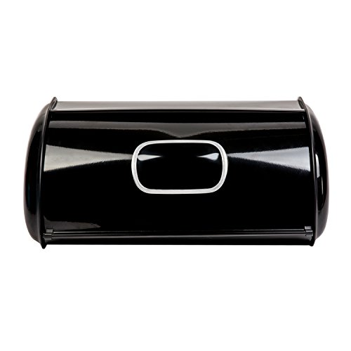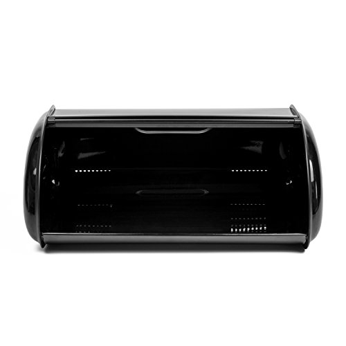 THRICH Deluxe Steel Modern Bread Box Storage with Roll up Lid, Clear Visual Window, Bright Black, 755oz (22L)