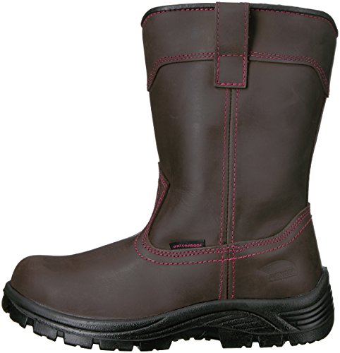 Studio : Avenger Safety Footwear Publisher : Avenger Safety Footwear Binding : Apparel Product Description The 7146 avenger women's wp EH comp toe safety boot is a great women's style loaded with safety features, and has just the right touch of pink! it has a specific women's last, designed for a women's foot. Full grain leather and direct attach construction ensures that you have a durable boot while the waterproof membrane construction ensures that your feet stay dry. Oil and super slip resistant outsole and a composite toe provides you with the protection you need on the job. Meets or exceeds astm F2413-11 impact and compression and EH ratings. When the going gets tough, the tough wear avenger work boots. 0