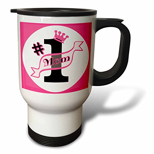 3dRose Number One Mom Pink Travel Mug, 14-Ounce, Stainless Steel