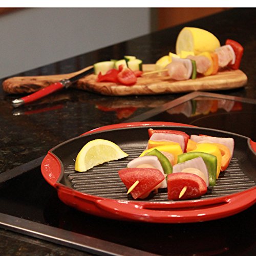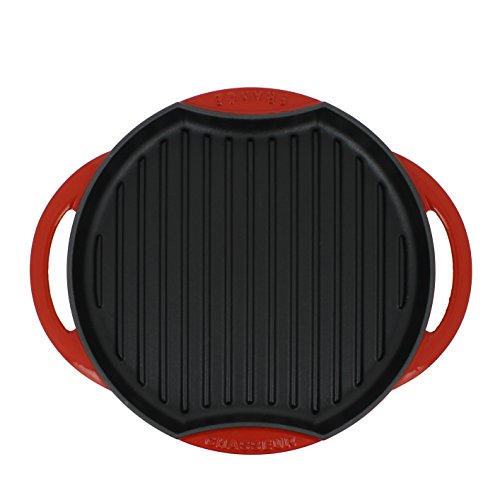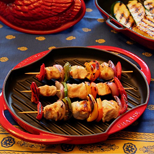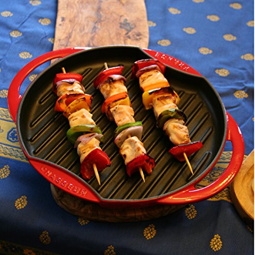 The Chasseur Round Cast Iron Grill provides all the flavor of an outdoor grill, with all the convenience of indoor cooking. This grill pan is constructed of thick cast iron to maintain its temperature during cooking, making it ideal for grilling anytime. Enameled cast iron cookware is valued for its versatility on all cooking surfaces (flame, oven, induction, electric, etc.), its even heating properties and exceptional browning capability as well as the ease with which it can be cleaned make Chasseur enameled cast the best choice for cookware.Feature