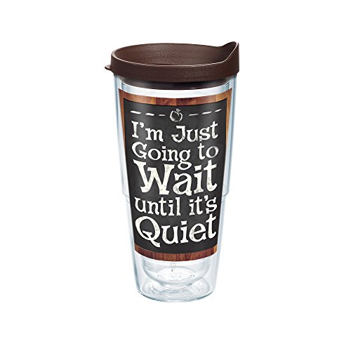 Tervis Teacher Wait Until Quiet Wrap Tumbler with Brown Lid, 24 oz, Clear