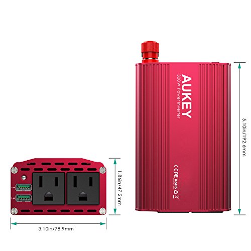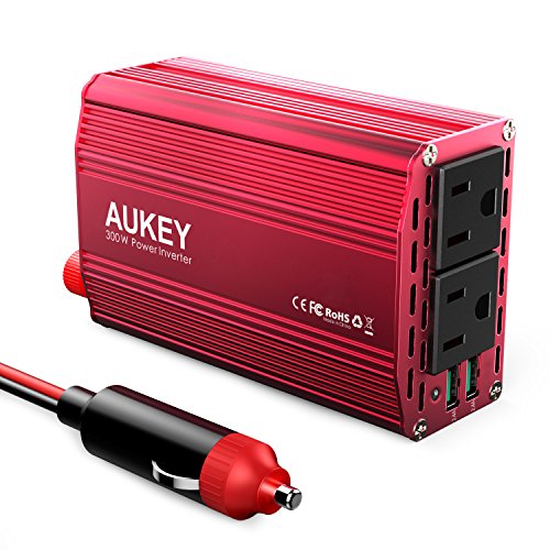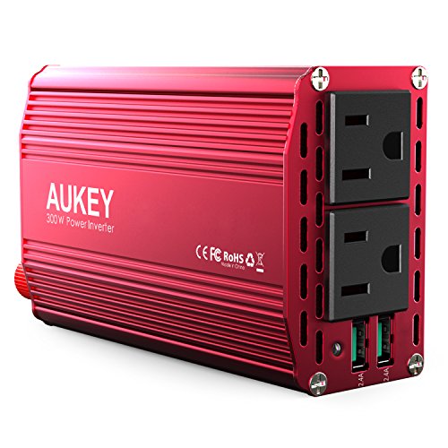 AUKEY 300W Power Inverter with Dual Outlets and Dual 2.4A USB Ports
