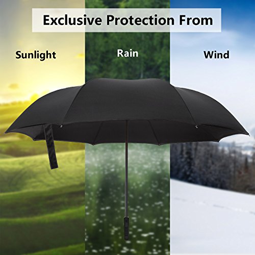 4.Rain Sun Use, Anti-UV Double layer cloth and durable umbrella bones make it stronger than other umbrellas. due to the aerodynamic design, it always finds the most comfortable position in the wind which makes it exceptionally pleasant to use, even in strong gales.
