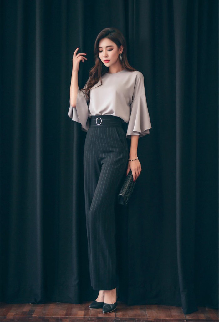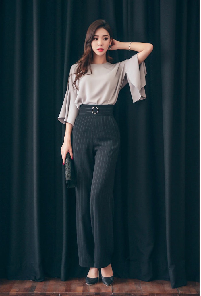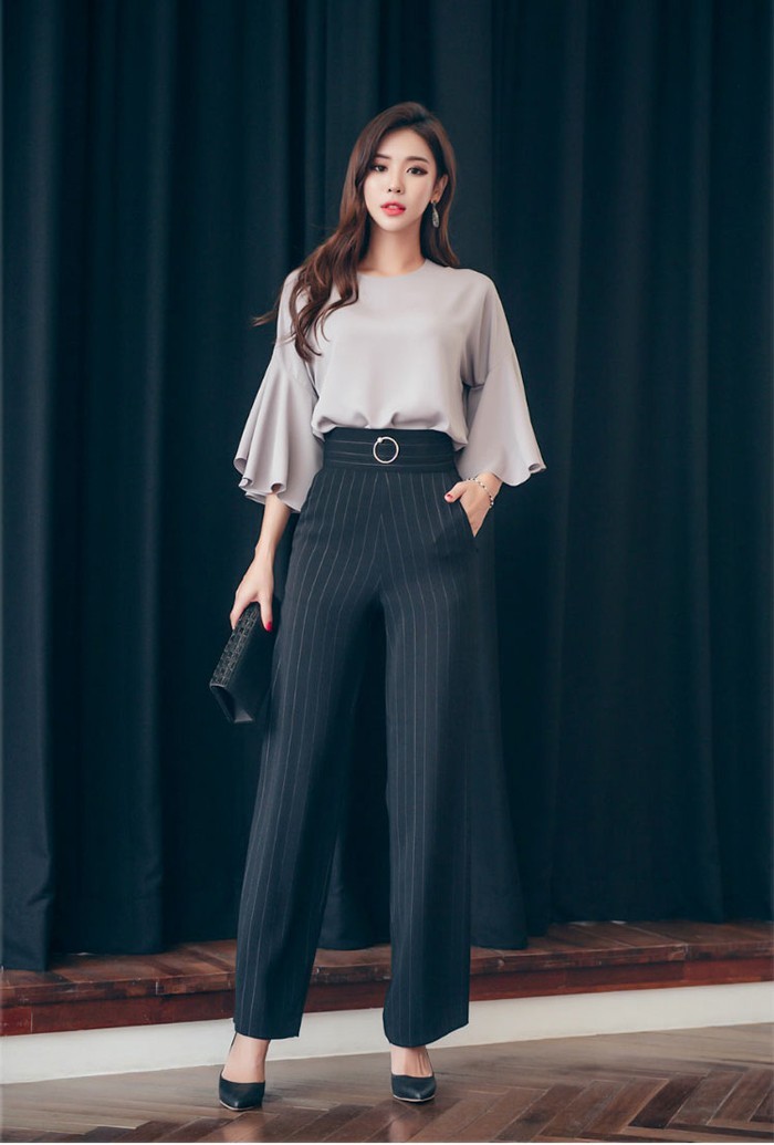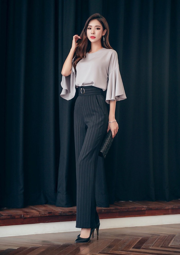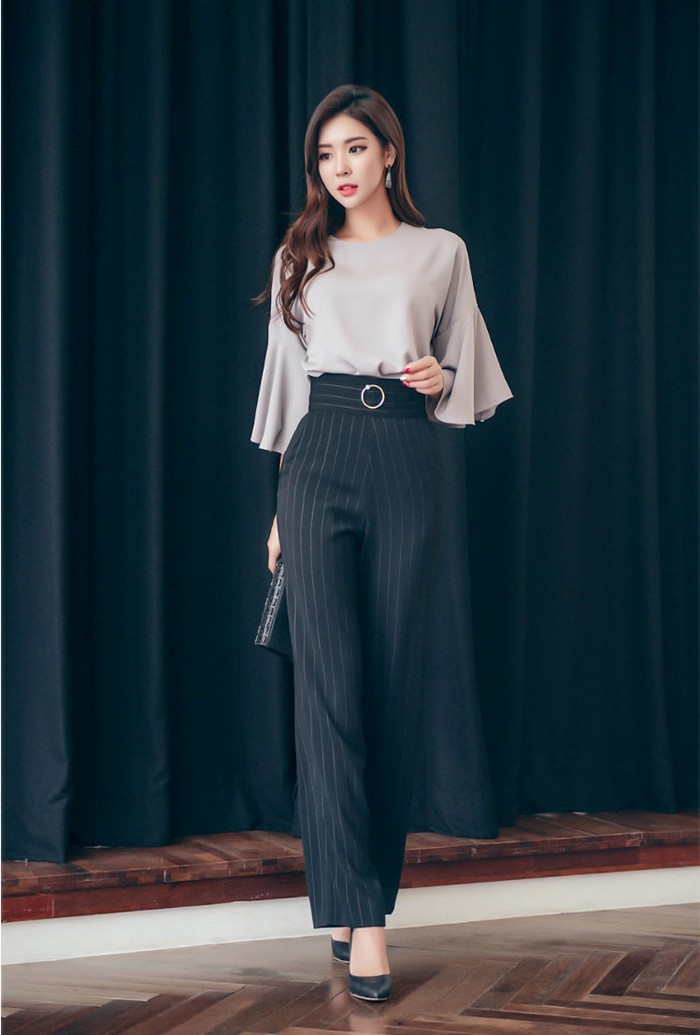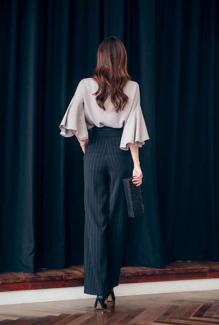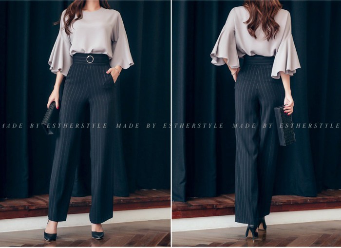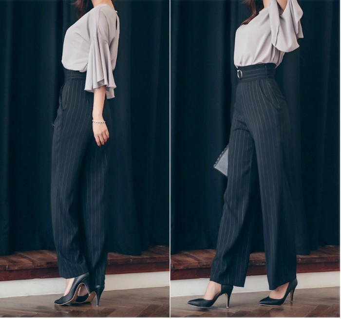 商品名:パンツ スラックス ハイウエスト ストライプ きれいめ 通勤