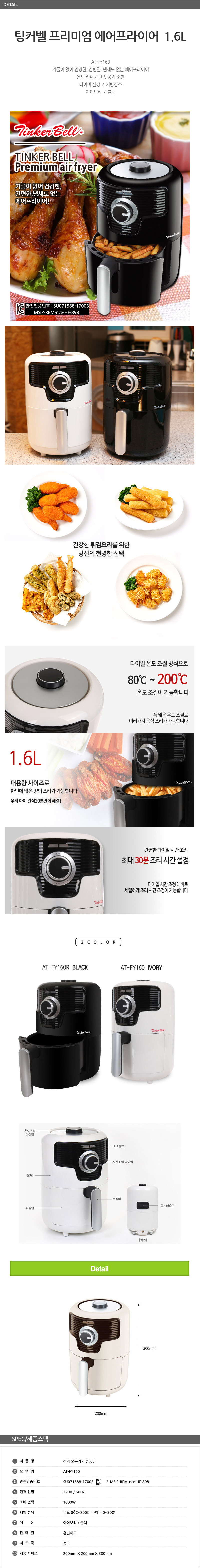 TinkerBell Air Fryers Well-Being Deep Fryers Electric Ovens 1.6L/ AT-FY160