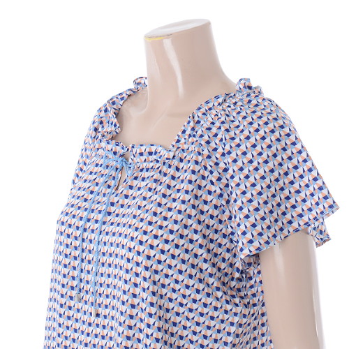 기하학 패턴 바탕에 네크라인 부분 끈과 장식으로 밋밋하지 않는 포인트를 주었습니다.