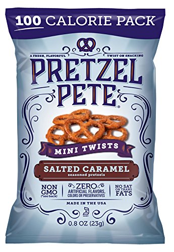 Pretzel Pete Seasoned Mini Twist Pretzels, Salted Caramel, 100 Calorie Bag (Pack of 24)