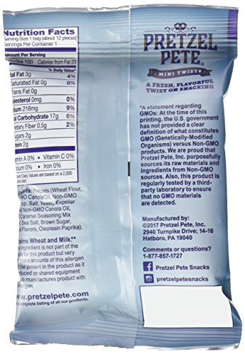 Pretzel Pete Seasoned Mini Twist Pretzels, Salted Caramel, 3.5 Ounce Bag (Pack of 6)