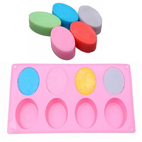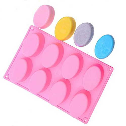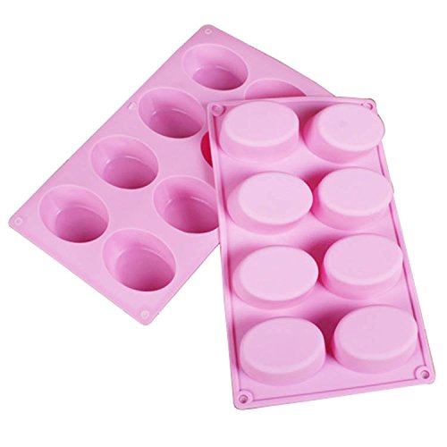 BAKER DEPOT 8 Cavity Silicone Mold for Handmade Soap, Chocolate, Ice Cube, Jelly Oval Egg Design Set of 2