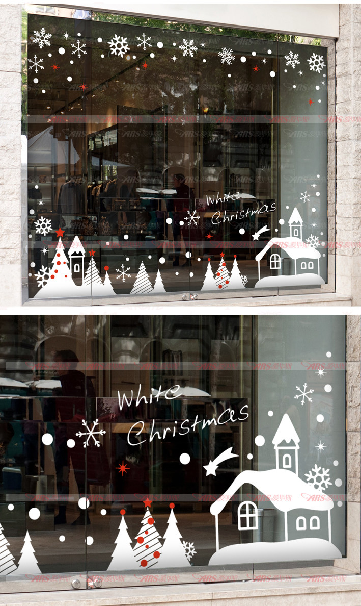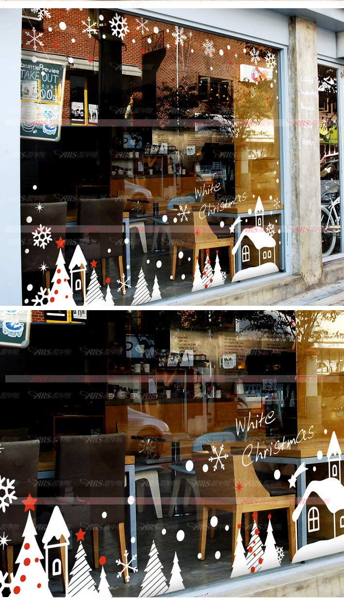 白色圣诞 新年节日布置 玻璃橱窗雪花树 装饰贴画墙贴纸 店铺商铺