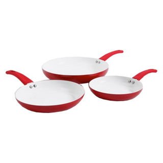 -. Title : Sunbeam Red/White Ceramic-coated Aluminum 3-piece 11-inch, 9.5-inch, and 8-inch Eco-friendly Fry Pan Cookware Set