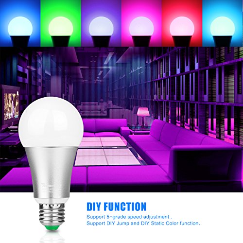 - ★ 10W E27 Dimmable Led Color Bulb: Up to 120 kinds of static color can be set by the Color Template on the controller! You can choose any color you like that has no limit compared to the 1st and 2rd generation RGBW bulb. Practical light for bars, KTV, stage, clubs, casinos, restaurants, cafe, birthday parties, wedding banquet, festive lights, other indoor and outdoor decoration