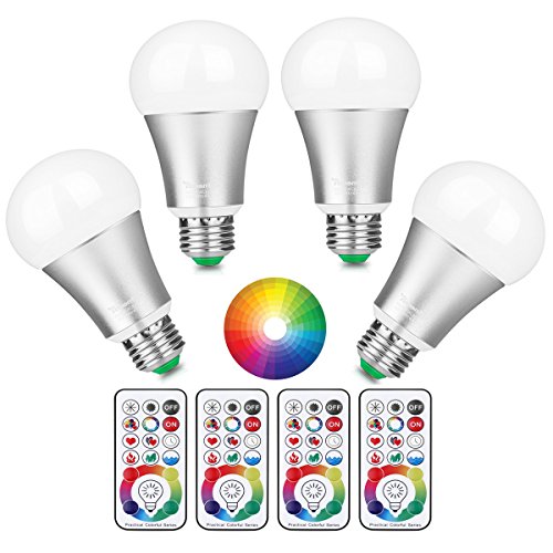 [Updated] Lemonbest 10W E27 Led Colour Changing Light Bulb with Remote Control, 120 Different Colour Choices, RGB+Daylight(6500K) Dimmable, Timming, Dual Memory DIY Collection Function, Pack of 4X