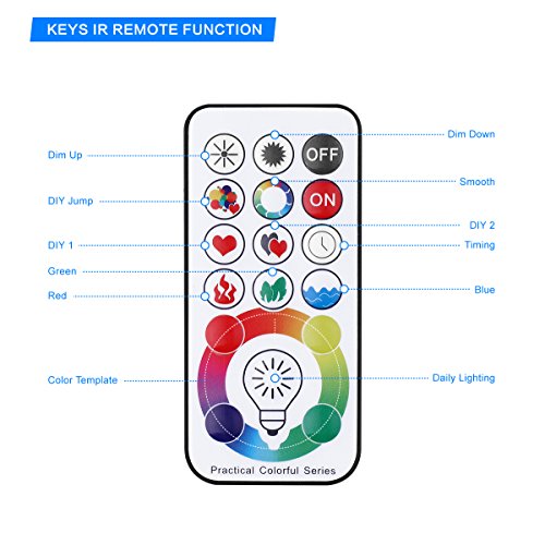 - ★ DIY Collection Function: This IR Remote Control Light Bulb not only improve the sensitivity up to at least 6 meters but also become more smarter, with the dual memory function on the remote control, it can remember your favorite colors, next time you do not need to reset, just print it and you will get the lightings you want and it can also remember the colors you set last time