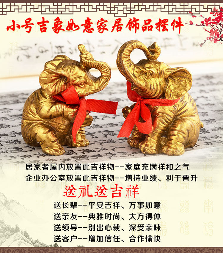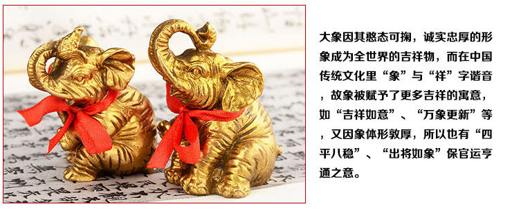 纯铜大象摆件吉象如意小号一对家居饰品招财聚财风水摆设